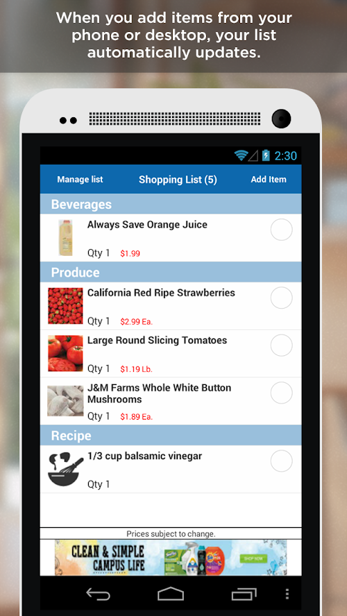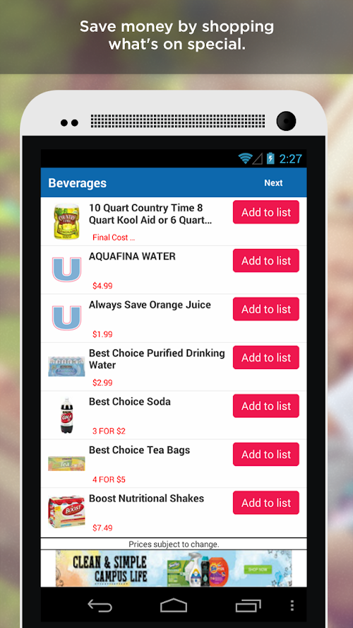 • Browse weekly specials to see current pricing and sale dates and add them to your grocery list