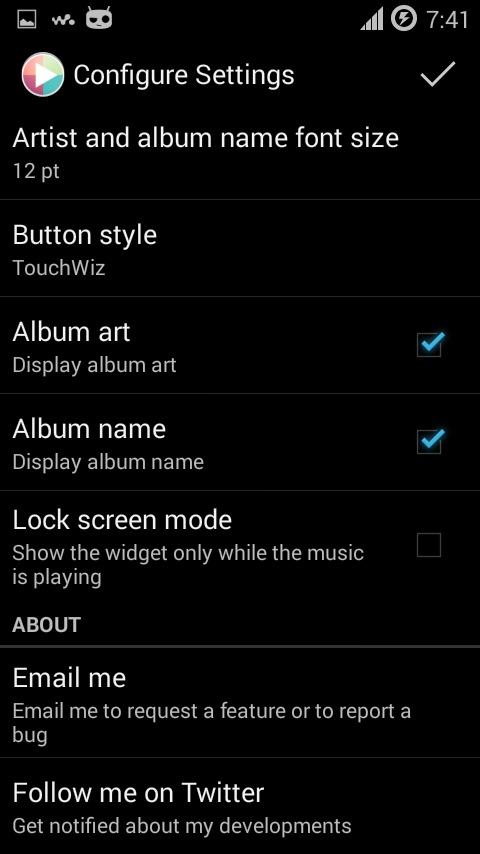 This version of Universal Music Widget Android App comes with one universal variant which will work on all the Android devices.