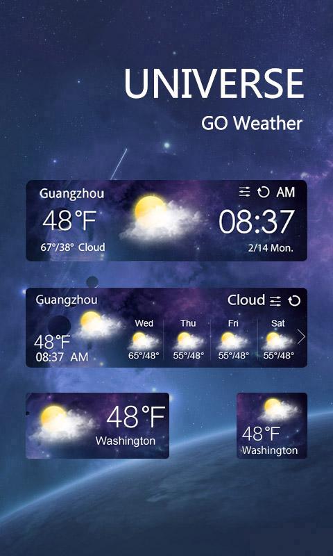 Universe Theme supports 4*1, 4*2, 2*1 sizes. It delivers the most accurate weather information from anywhere at any time.