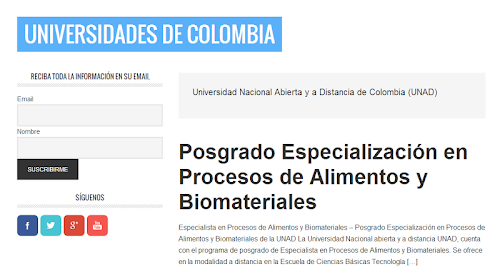 Encuentre información sobre la UNAD, UNAL, UDEA, ESAP, UniMinuto, Universidad de Cartagena, Universidad del tolima, UniCauca, Universidad Distrital, Universidad Javeriana...Universities Colombia is the application of information portal UniversidadesColombia.co