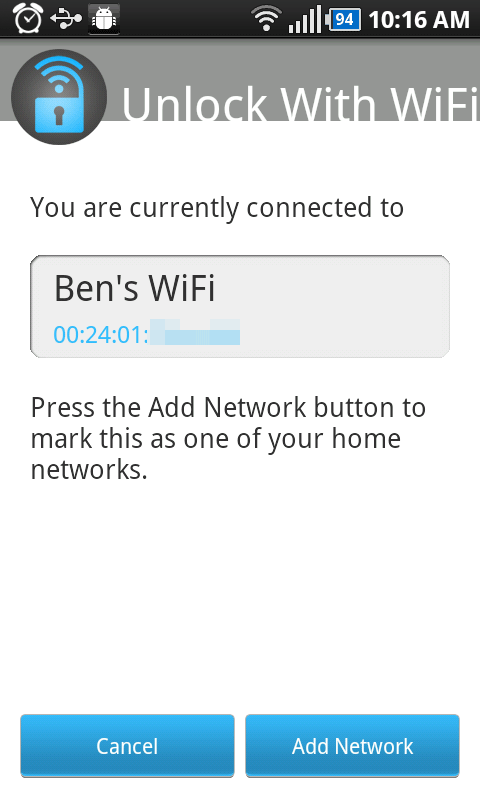 Make sure to exclude Unlock With WiFi from your task killer apps, or it won't work properly.