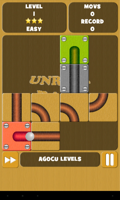 In UNROLL BALL also known as UNROLL ME hold 12 fixed levels, 4 initial 4 finals and 4 intermediate and other mobile goals, also there is a special block that can turn in place in 4 different positions, this block will be ideal as a wildcard in any play.