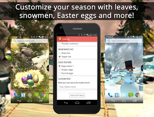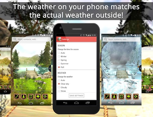 UR 3D Four Seasons Wallpaper has spring, summer, fall and winter all wrapped up in one! Set the season yourself or put it in automatic mode and the seasons will change automatically, according to your location.