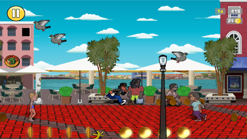 "Urban Chase" Run dodge people/trash can/water splash/bananas and more in the streets of Curacao. Collect coins during the game. Beat your highest score.