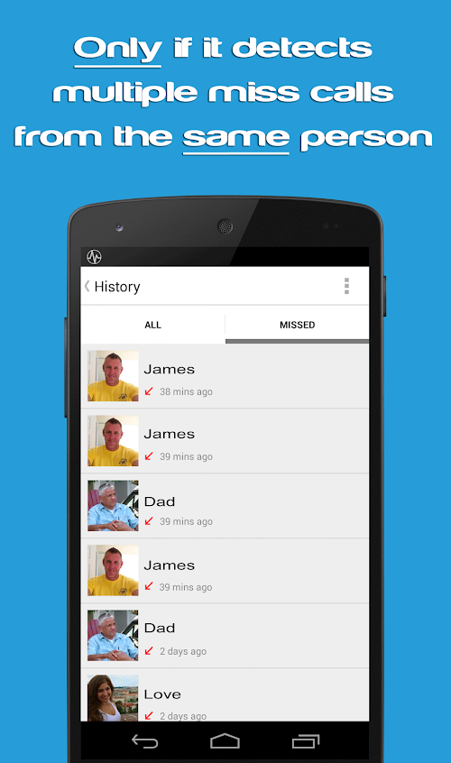 Cause you know it was urgent when you pick up your phone and see a lot of missed calls from the same person. So from now on every time you put your phone on silent mode, Urgent Calls™ will automatically activate itself. When it sees that you keep missing calls from the same person, it will immediately alert you with sound.