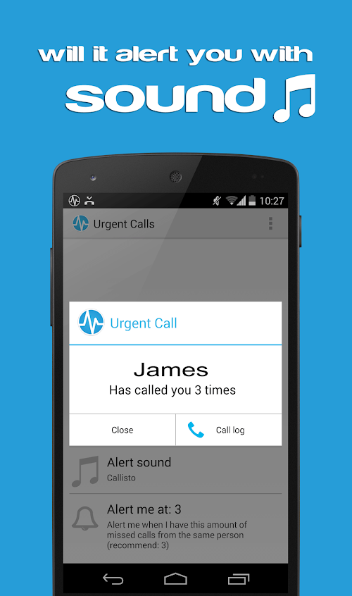 In the free version Urgent Calls™ will ring the emergency alert sound when you have 3 missed calls from the same person. Upgrade to the FULL version if you want to change this amount of missed calls and no ads: http://goo.gl/a3bfXr