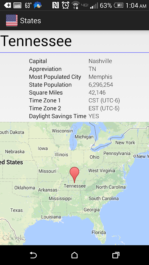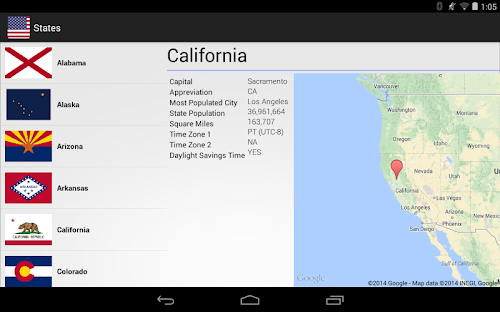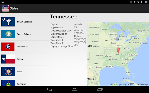 Ever wonder what the capital of Tennessee is or what the flag of New York looks like? Find out this information and more with the US States app!