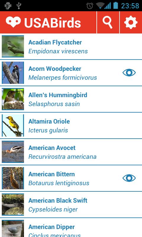 The app lets you mark the birds that you've spotted to help keep track of which species have been seen and which are still eluding you.