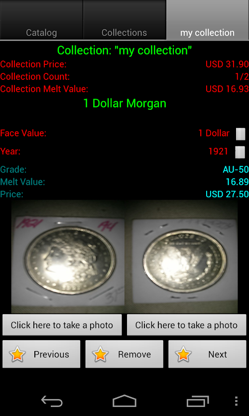 5. Each coin in a collection can override its default obverse and reverse images with live photos of the coin.