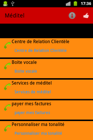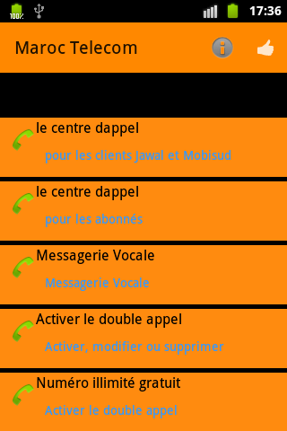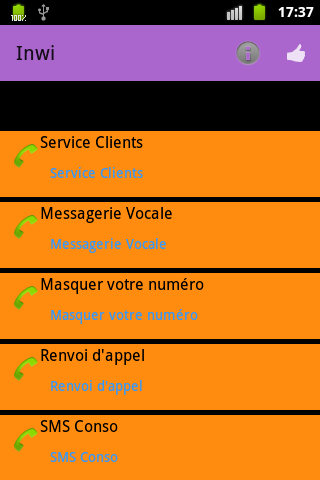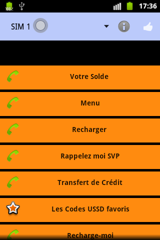USSD SERVICES MRC is an application that provides easy access to the most recurring services (USSD your balance, recharge, Otlibni, transfer credit ...) in mobile operators in Moroco (Méditel,Maroc Télécom et INWI). You are no longer required to learn by heart all the USSD code (* 120 # .....), you just have to launch the application and select the desired service.