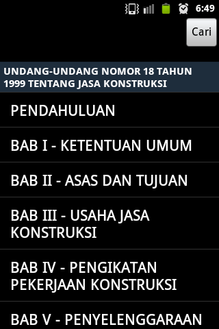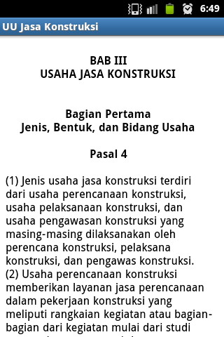Undang-Undang tentang Jasa Konstruksi (Undang-Undang Nomor 18 Tahun 1999) dalam format yang mudah dibaca di device android.