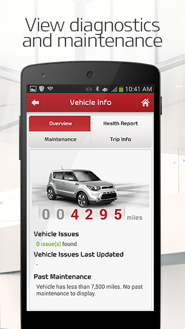 1. Vehicle Diagnostics: Diagnose whether problems exist within major vehicle features. If an abnormality exists, you can call Kia Roadside Assist or schedule a service appointment with any Kia Dealership directly from the vehicle or using the UVO app.