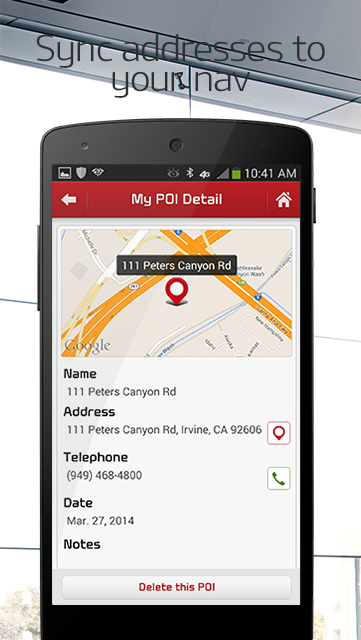 2. MyPOIs: Synchronize your POIs list from your MyUVO account with your vehicle’s navigation system.