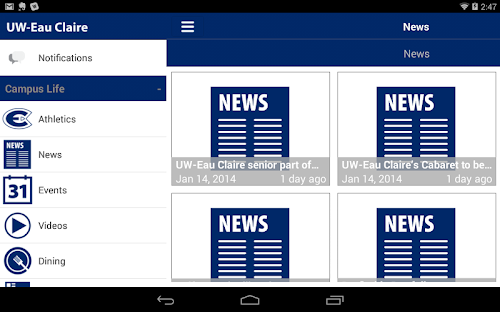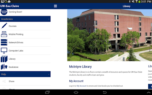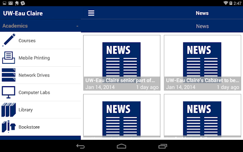Thanks for using the UW-Eau Claire Mobile app! Every update of the UW-Eau Claire Mobile App includes improvements for speed and reliability. As other new features become available, we’ll highlight those here.