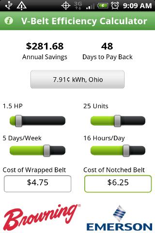 Instantly calculate estimated savings potential of upgrading from a wrapped to a notched V-Belt.
