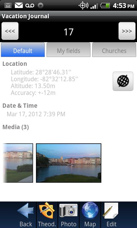 The Vacation Journal is a MajorForms android application that allows you to track and document your vacation or trip incorporating images, video, audio recordings, and/or text. It also allows you to track (with GPS) all or parts of your vacation/trip and enables the data to be synchronized to a free website created by you to store, edit, and/or share your trip with others. You can also allow family and friends to view your vacation during or after your trip by sharing it through your website, Facebook or Google+, Twitter, Linkedin, e-mail, etc. Once the vacation-trip is uploaded to your website, you can edit the data, create reports and/or maps, and download the data or reports to spreadsheets or other documents. You do not need to have access to the internet to run the application, but if you do, you can upload your data and preserve it. The vacation journal now automatically documents the weather for each event. Give it a try, it is free. Once your vacation is completed, you can automatically create a lasting video memory of your trip. Check out similar apps on www.majorforms.com.