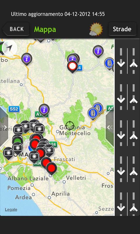In support of all information related to traffic, you can view in map mode also the weather forecast for major Italian cities.