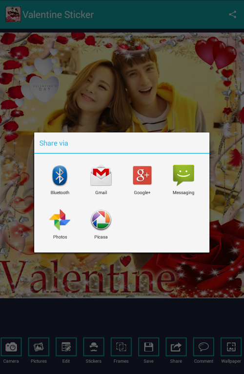 We deliver happiness And love for each other Valentine Sticker sticker shapes which are lovely. A variety of shapes We are not just pretty picture frame to dress well and even has a photo editor like the image to look vintage. Face shapes The face to remove acne, remove wrinkles, dark spots and remove the white pages, and more, and can also send us a comment on Facebook at all. Or share and share this love was simple as well.