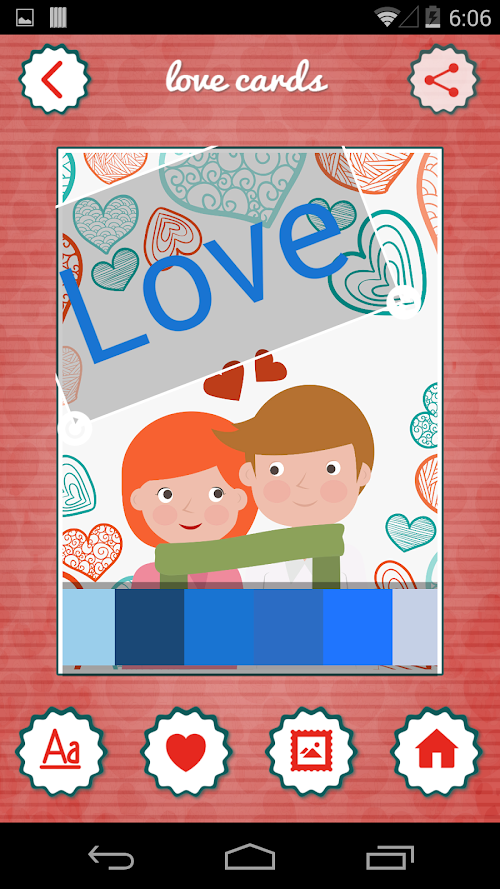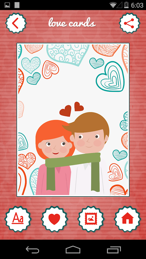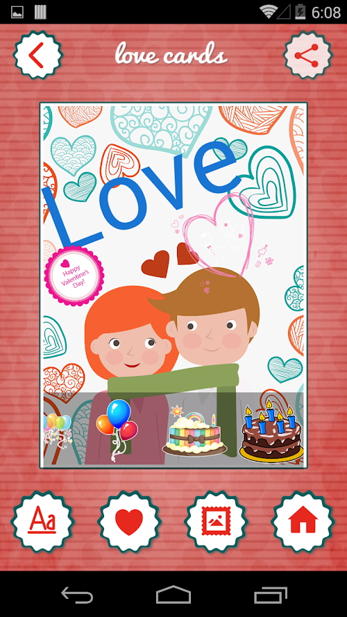 Valentine's love cards are new romantic love wallpaper for expressing your feelings and devotion. This is best way - be my valentine to that special someone than with this charming app? Choose from selection of beautiful frames add your personalized greeting with text editor with fonts and colors. Get more personal options of including photo either from your photo album or by camera app. sharing your card with world is easy with this app.