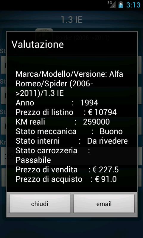 Potrete cosí dichiarare il reale stato della carrozzeria, degli interni o della meccanica e spedirvi la valutazione via email.