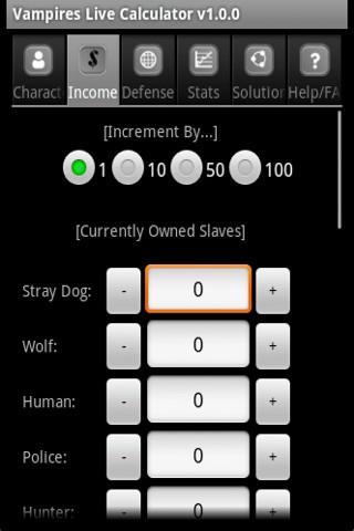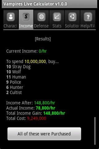 * Income Extrapolation - Shows you the number of abilities you can buy (that have upkeep) and the number of slaves needed to cover the upkeep cost. Simply select the ability you wish to buy and the amount of blood to spend, and extrapolate!