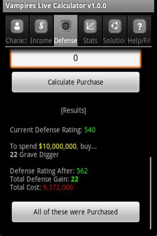 * Basic Defense - Based on a user entered defense value, the calculator will create a list of all defensive slaves needed in order to fill the request and the total cost of the project.
