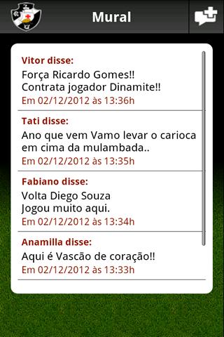 Mural de comentários onde você pode interagir com o restante da torcida e trocar informações sobre o time.