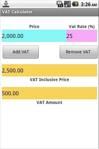 A VAT Calculator app that allows the user to input a price and VAT Rate percentage. One can either ADD VAT or REMOVE VAT to the inputted price.