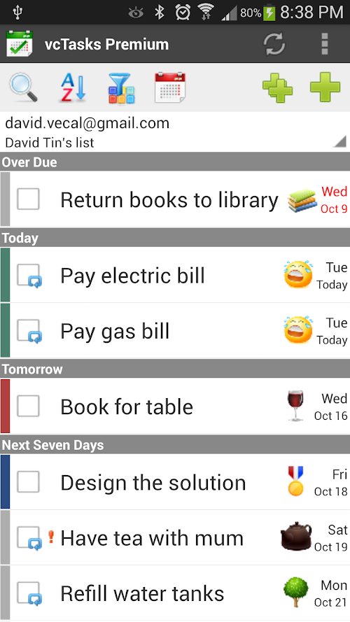 vcTasks is a very powerful task management app which allows you to easily manage your tasks on device. Tasks can be synced to Google Cloud or kept on device only.