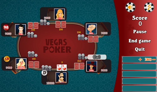 Can you beat all your opponents in Vegas playing Poker? Play Texas Hold'em Poker against 5 computer opponents. Bet on your cards and try to defeat your opponents. Try to outsmart or outbet your opponents.