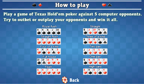 Try to get a good combination of cards in your hand combined with the cards on the table. Read the ingame help what combinations are the best. A royal flush is the best card you can get in this game.