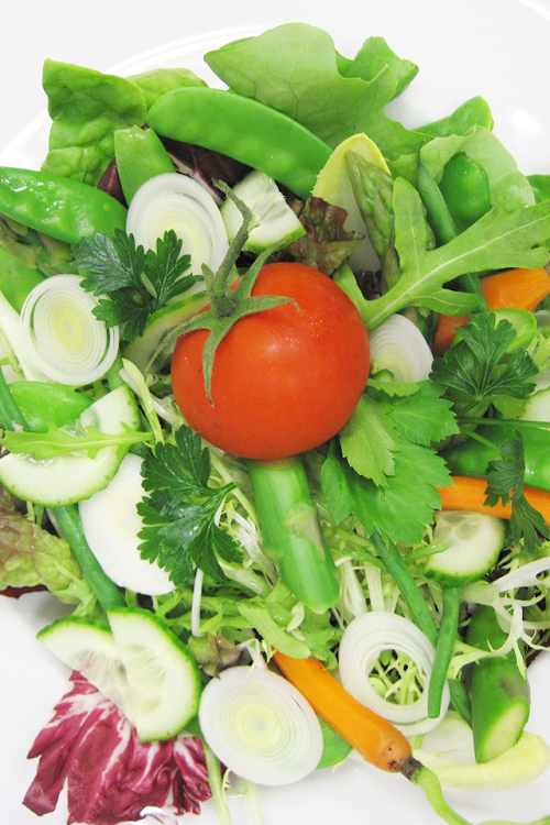 Apart from greens, there are other vegetables that can be used in salads. Commonly used raw vegetables for salad include spring onions, celery, tomatoes, carrots, green onions, red onions, cucumbers, peppers, and radishes. There are other ingredients that can be added to this salads and they include; olives, croutons, avocado, green beans, mushrooms, artichoke hearts, hardboiled eggs, cheeses, heart of palm, roasted red bell peppers, meat (for example bacon and chicken), or seafood (like shrimp and tuna), are occasionally added to salads.