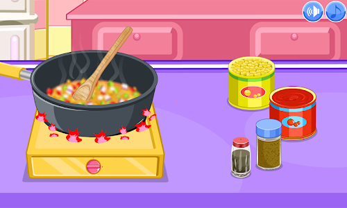 Cooking can be lots of fun and with the Vegetarian Chili Cooking Game you can really bring out your inner chef! With this free cooking game you will get to choose all your cooking utensils from the shelves and ingredients from the fridge ready for your fabulous cooking session! Next you get to peel and slice your potatoes and place them in a pan before adding your pepper, chili flakes and seasoning! Stir and pour your mixture into a pan before cooking it in your very own oven! Once done you can then slice the rest of your vegetables together before cooking both your mixtures and ingredients together in your frying pan. Next you get to add the seasoning, corn, and tomato paste to make your yummy vegetarian chili dish! So if you enjoy cooking and want to be like a true chef, why not try this cooking game today!