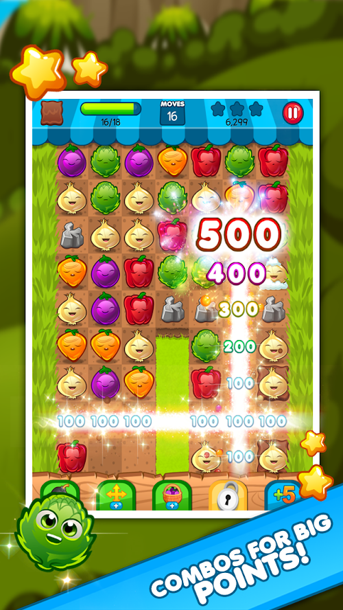 - Master five challenging gameplay modes, including High Score, Free The Veggie, and Clear the Mud!