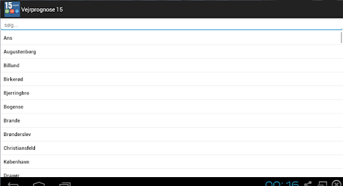* Vejrudsigt Danmark app giver 15 døgn vejrudsigt for alle byer i Danmark. Der er alle byer som København, Odense, Aalborg og Århus.