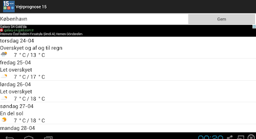 ** 15 days weather forecast app for Denmark, requires to have access to the Internet to use actual weather data.