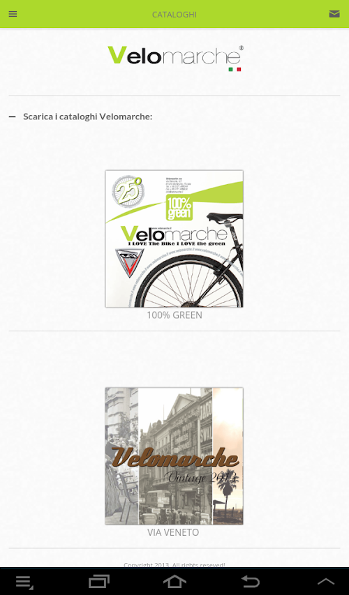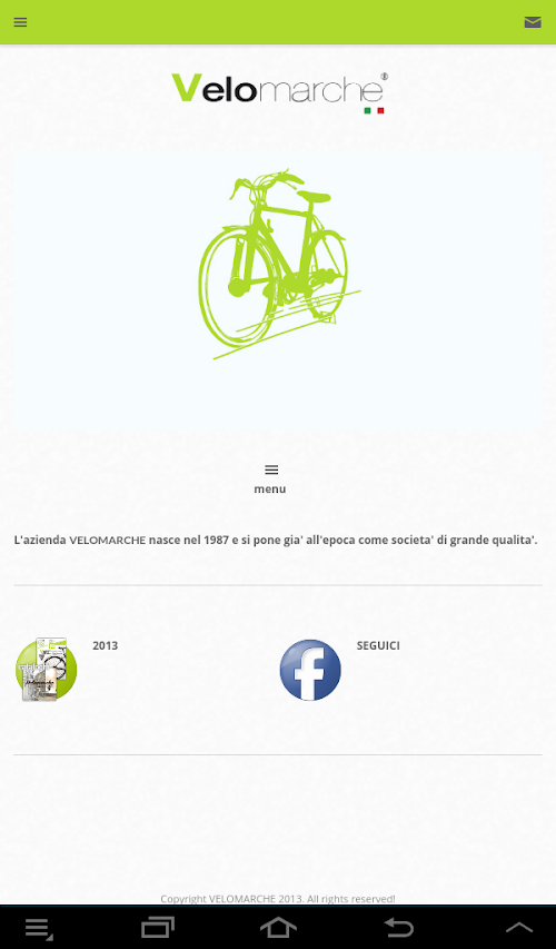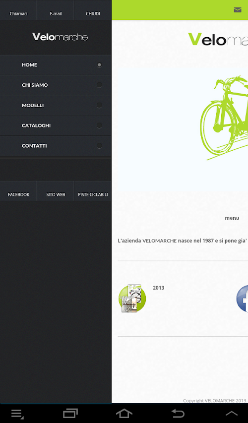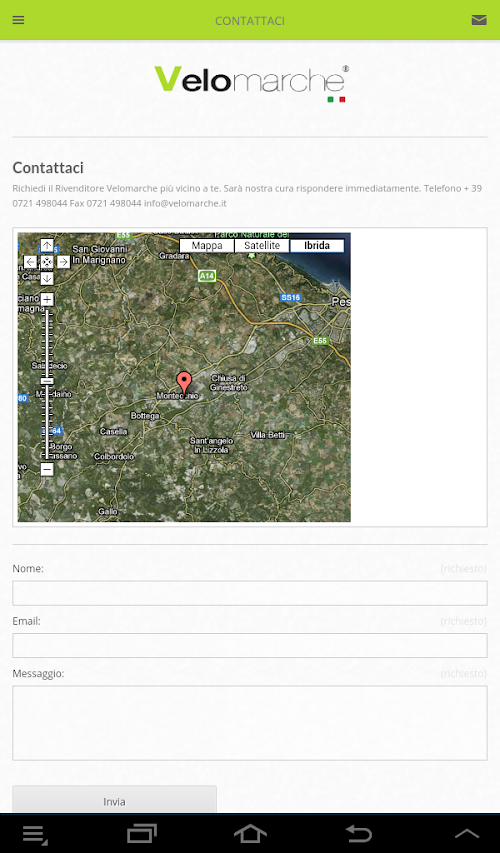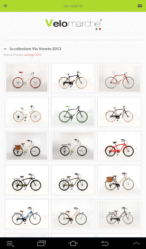 App contiene un catalogo biciclette foto e pdf , indicazioni sull'azienda e indicazioni sulle piste ciclabili in Italia.VELOMARCHE The company was founded in 1987 and stands already 'at the time as society' of great quality '.