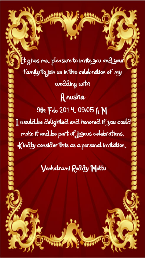 It gives me, pleasure to invite you with your family to join us in the celebration of my wedding with