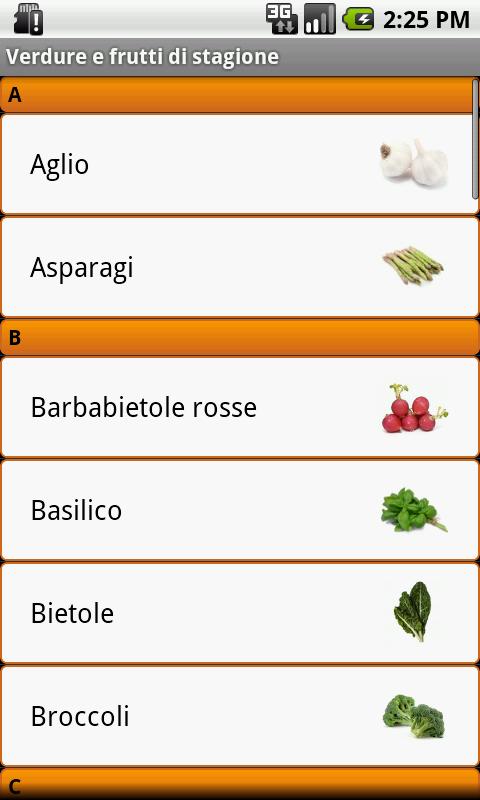 Alcune informazioni a corredo descrivono caratteristiche e curiosità di ciascun alimento presente.Simple and functional application that allows you to discover, for the main vegetables and fruits that we major on our tables, in which month it is easier to find them; both in our supermarkets that our gardener of confidence.