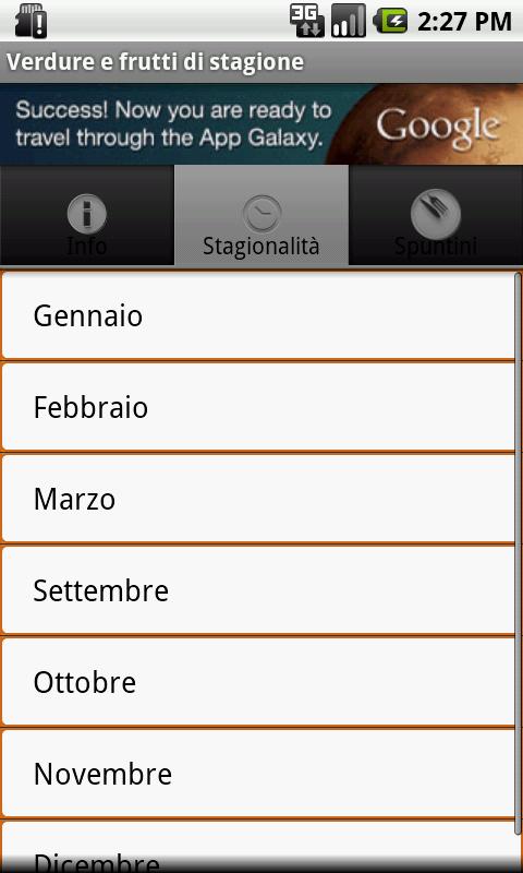 Semplice e funzionale applicazione che permette di scoprire, per le principali verdure e i principali frutti che mettiamo sulle nostre tavole, in quali mesi è più facile trovarle; sia nei nostri supermercati che dal nostro ortolano di fiducia.