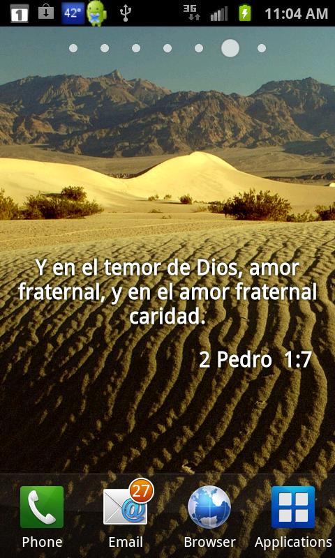 Disfrute de fondos imponentes y más de 500 versos Biblicos en su Android versión 2.1 o mas. Utilice este Wallpaper en vivo para conseguir versos inspiradores y guía adondequiera . Una cruz opcional que gira agrega diversión. Con suficiente reacción positiva, nosotros agregaremos más fondos y versos.