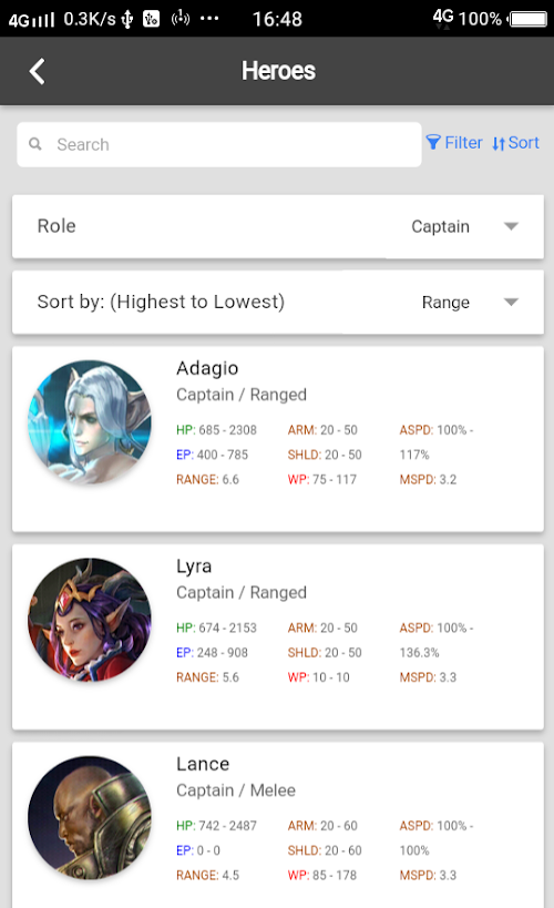 • Filter heroes by Role (Captain, Jungle, Carry)
