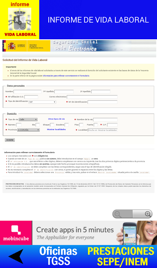 Con esta aplicación podrás conseguir EL INFORME DE VIDA LABORAL, te explicamos con detalle como obtenerlo y también te ofrecemos la posibilidad de conseguirlo a través de esta aplicación, Te ofrecemos además todas la información necesaria sobre todas las prestaciones que ofrece el INEM/SEPE
