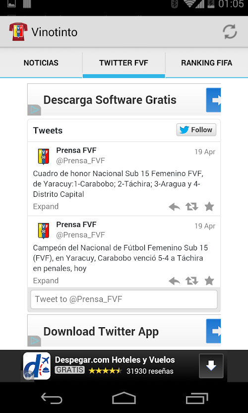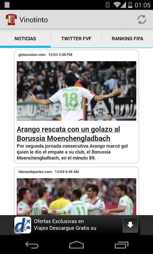 Vinotinto te permite tener al alcance de un solo click noticias de diversas fuentes sobre nuestra selección, entre otras: