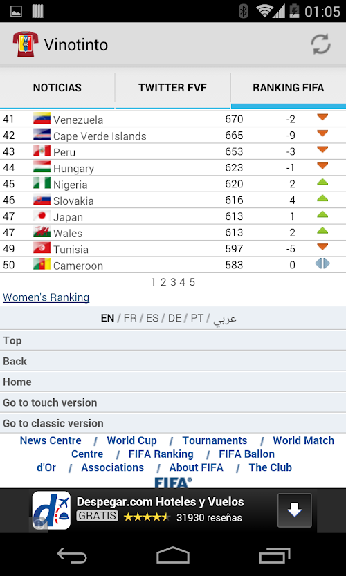 Además se incluyen nuevas fuentes de noticias, el twitter de la FVF y se coloca el ranking de clasificación de selecciones FIFA.