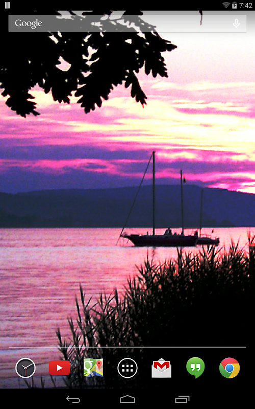 No violet sunsets were harmed in the making of this app. Select text from Wikipedia, which does not endorse this product. Licensed under the creative commons (creativecommons.org/licenses/by/3.0/). Text at wikipedia.org/wiki/Live_Wallpaper and wikipedia.org/wiki/Sunsets.