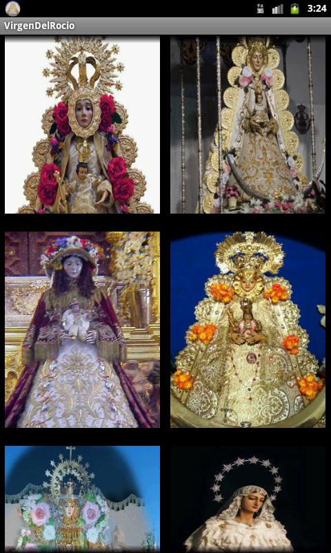 Con esta aplicacion podras disfrutar de 26 fondos de pantalla de alta resolucion de la Virgen del Rocio.