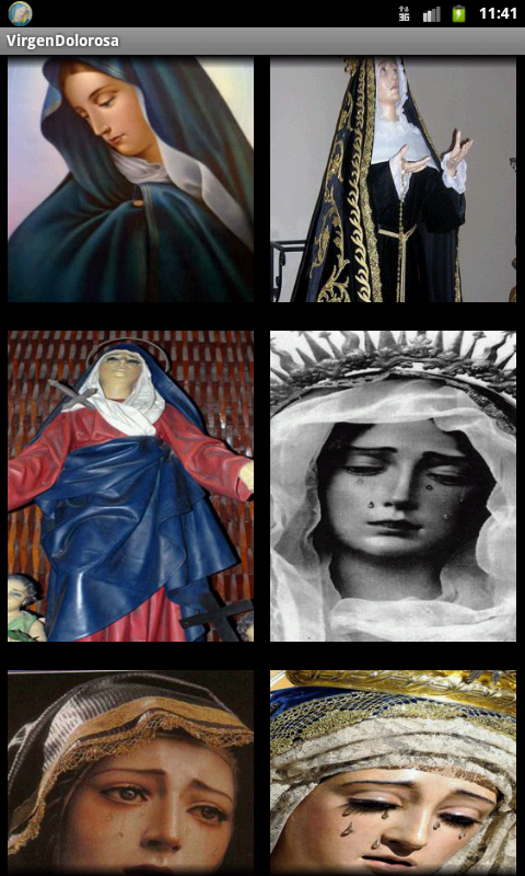 Con esta aplicacion podras disfrutar de 10 fondos de pantalla de alta resolucion de imagenes fantasticas de la Virgen Dolorosa.