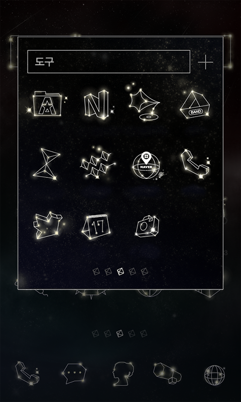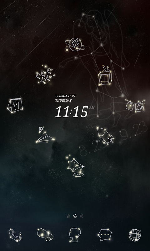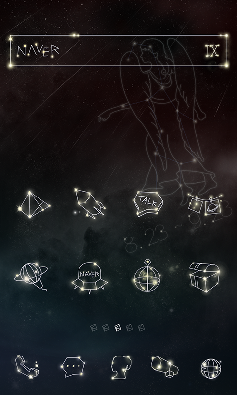This is a LINEl launcher theme that holds the starry summer night embroidered with constellations. Can you see the Virgo of September floating in the sky?
