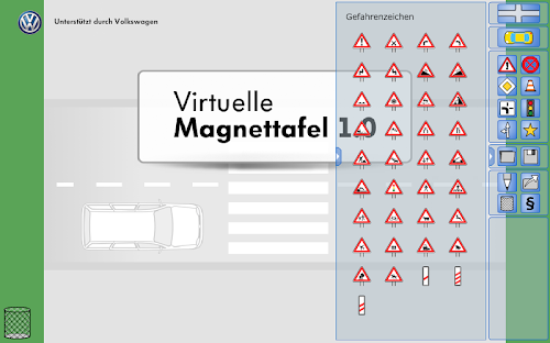 Fahrlehrer und Fahrschulbetreiber erhalten mit der Virtuellen Magnettafel von Volkswagen ein spannendes Instrument für den Theorie- und Praxisunterricht: Die App bietet dem User die Möglichkeit, unterschiedlichste Straßensituationen darzustellen und dabei auch ortstypische, prüfungsrelevante Verkehrsszenarien zu simulieren und zu trainieren. Durch den Einsatz auf dem mobilen Endgerät kann dies auch im Rahmen des Fahrunterrichts geschehen und diesen effektiv unterstützen.Volkswagen AG